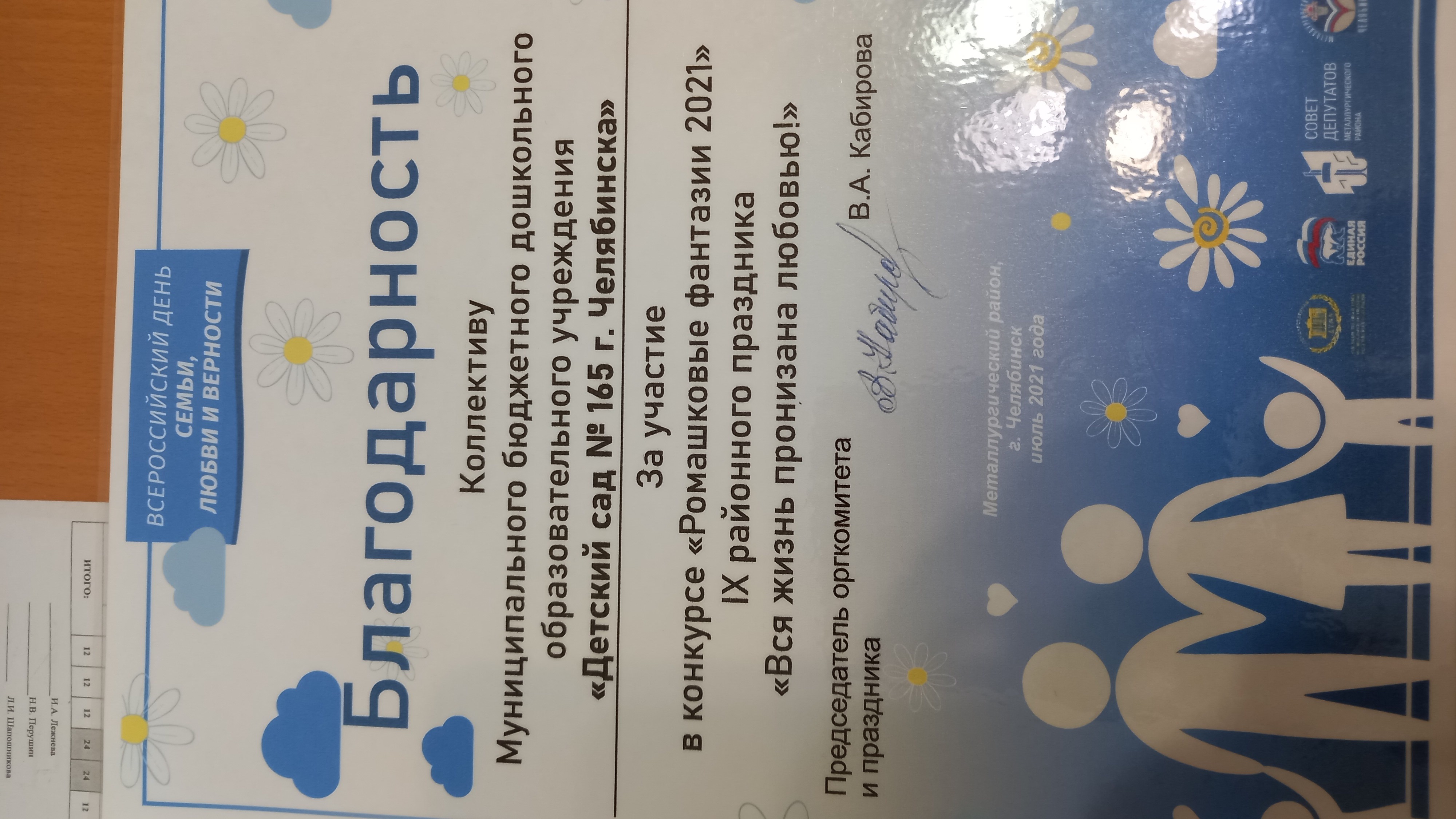Печать БЛАГОДАРНОСТЬ РОДИТЕЛЕЙ ВОСПИТАННИКОВ СТРУКТУРНОГО ПОДРАЗДЕЛЕНИЯ МБДОУ "ДС № 165 г. Челябинска" группы раннего возраста "ЗВЕЗДОЧКИ" Назад Вперед
